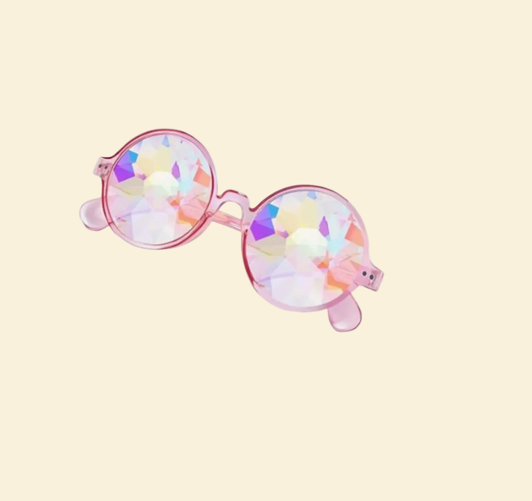 - Kaleidoscope Glasses — rainbow kaleidoscope lens pink glasses for a magical view of the world