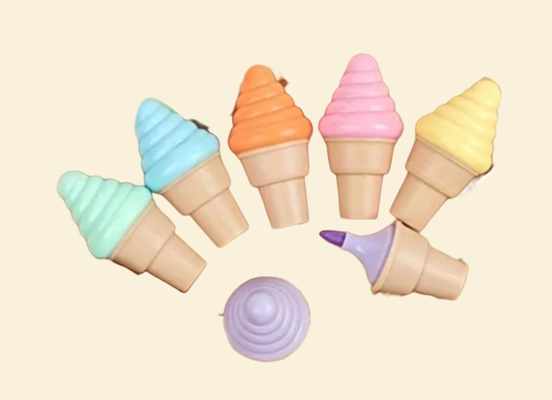 - Ice Cream Highlighters — set of five vibrant mini highlighters